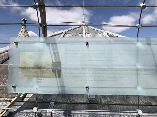 巴黎圣母院頂的有機玻璃上的雨果名句