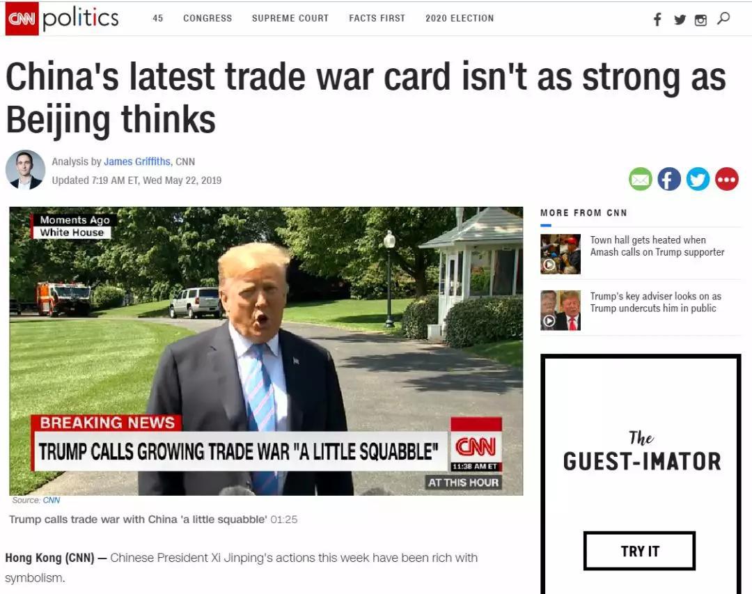 也有一些美國媒體沒(méi)那么悲觀(guān)。CNN就發(fā)表了一篇評論,稱(chēng)稀土這張“貿易戰牌”沒(méi)有想象的那么強大。
