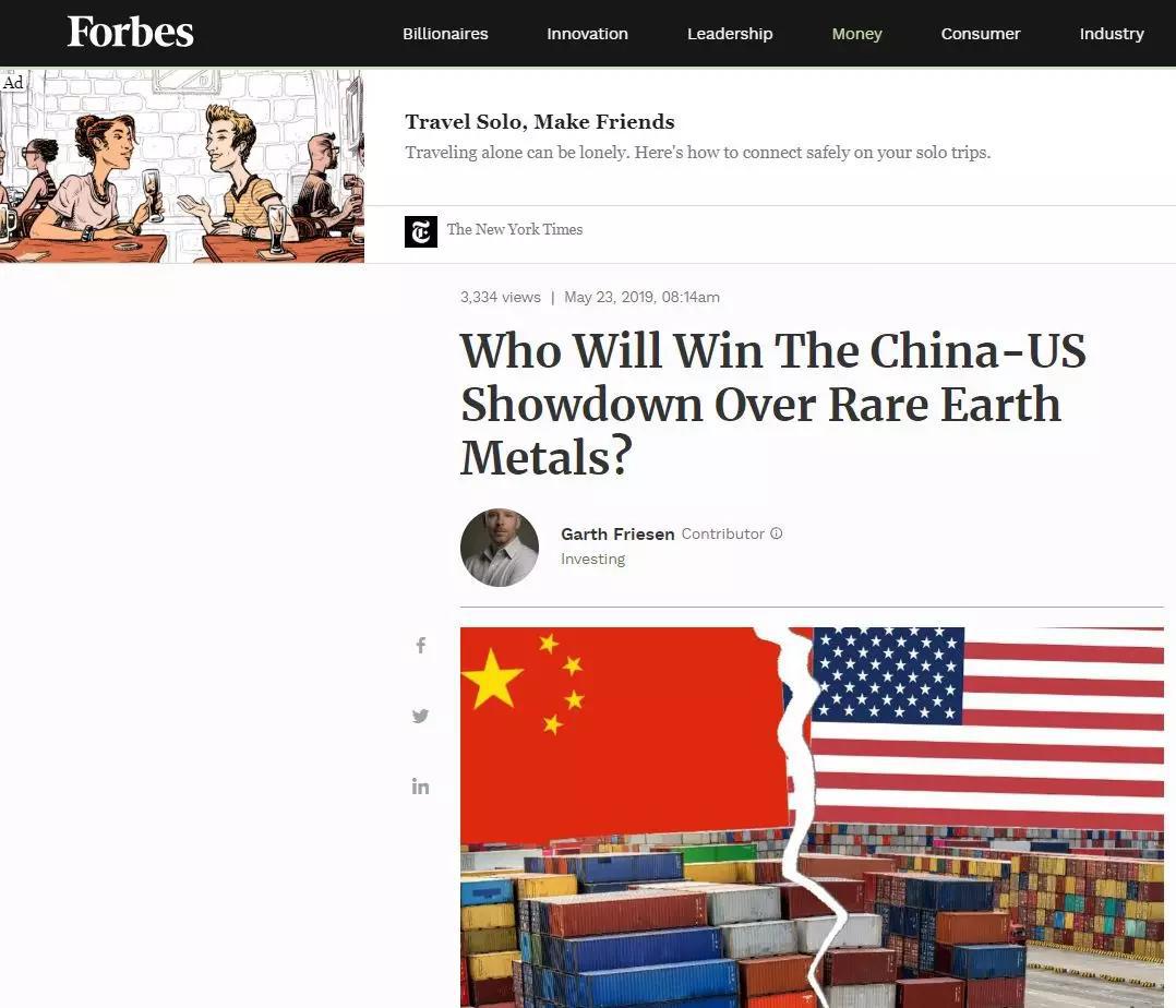 《福布斯》也比較“樂(lè )觀(guān)”。在題為《中美稀土攤牌誰(shuí)會(huì )贏(yíng)》的文章中,作者并沒(méi)有提及中國在稀土制造中技術(shù)領(lǐng)先于美國,而是把美國稀土產(chǎn)業(yè)落后,歸因于美國“不愿意”做。